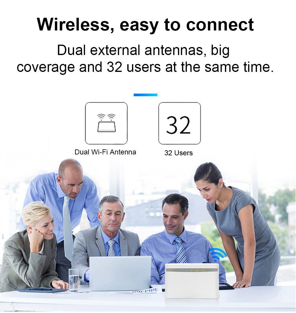 این یک روتر CPE داخلی LTE بسیار پیشرفته است. برای برآورده کردن نیازهای یکپارچه داده و دسترسی Wi{0}}برای کاربران مسکونی، تجاری و شرکتی طراحی شده است. (می تواند به آنتن های خارجی کانکتور SMA متصل شود!) 150M با سرعت بالا، LTE FDD: DL/UL 150M/50 Mbps (Cat 4). انتقال 4G به Wi{6}}، بدون نیاز به دسترسی پهن باند، قرار دادن سیم کارت، وصل و پخش. WiFi کل آپارتمان و خانه را پوشش می دهد، از اینترنت پرسرعت در همه جا لذت ببرید. اتصال آسان، دو آنتن خارجی، پوشش بزرگ و 32 کاربر به طور همزمان.